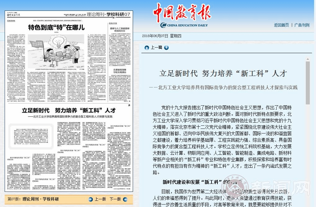 6月7日,《中国教育报》第七版“理论周刊.学校科研”刊登了贝博官网党委书记郑文堂的理论文章《立足新时代 努力培养“新工科”人才——ballBET贝博BB艾弗森培养具有国际竞争力的复合型工程科技人才探索与实践》。文章从中国特色社会主义进入新时代这一重大政治判断出发,分析了新时代高等教育发展的新要求,从理论和实践深入阐释了ballBET贝博BB艾弗森立足传统工科院校基础,大力发展 “新工科”专业和特色专业集群,积极探索和培养富有时代特点...