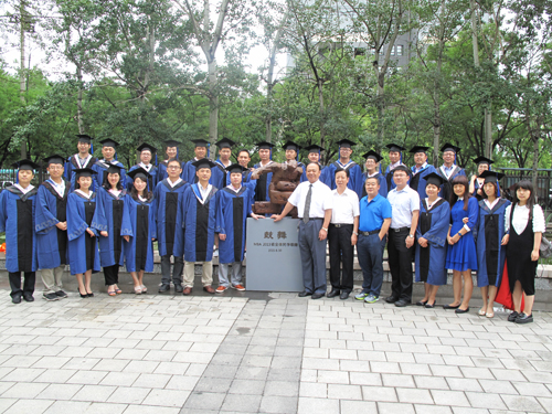 2015年6月30日上午,MBA2013级全体毕业生向学校捐赠“鼓舞”雕像仪式在体育馆前举行。