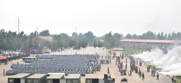 7月10日下午,2014级军训学生灭火逃生演练活动在军训基地举行。