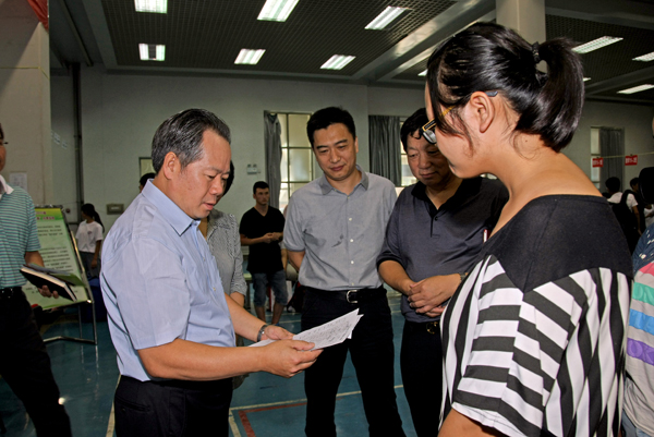 (郑登文副主任一行视察迎新绿色通道) 9月8日上午,北京市教育委员会副主任郑登文,北京市财政局教育事业处处长李红娜、北京市学生资助事务管理中心主任张思堂一行莅临贝博官网,视察指导迎新绿色通道工作,并就学生资...