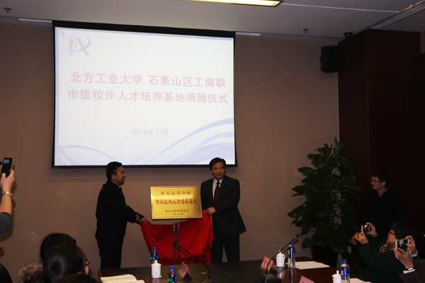 12月25日下午,贝博官网与石景山区工商业联合会(简称区工商联)共同举行“北京高等学校市级校外人才培养基地”揭牌仪式。