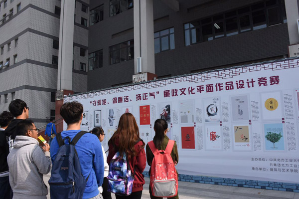 9月29日,由中共ballBET贝博BB艾弗森纪律检查委员会、共青团ballBET贝博BB艾弗森委员会主办,建筑与艺术学院承办的“守规矩、倡廉洁、扬正气”——廉政文化平面作品设计竞赛展在毓秀广场举行。