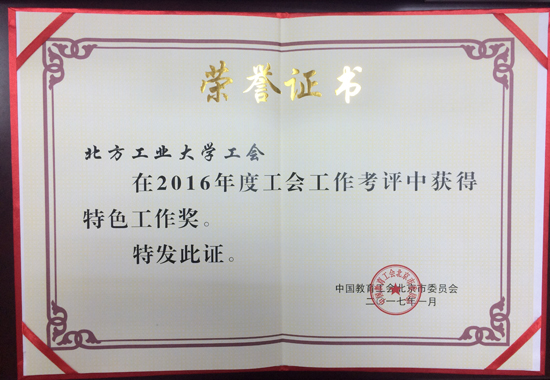 近日,从北京市教育工会下发的《2016年度北京市教育工会系统光荣册》获悉,贝博官网工会在2016年度开展的“以群团工作会议精神为指引,努力打造文化校园品牌”系列活动被授予“特色工作奖”。