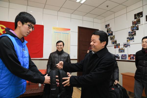 2017年1月20日,恰逢农历“小年”,团中央书记处书记傅振邦、团中央学校部副部长宋来、团市委副书记王洪涛、团中央学校部学联办主任柏贞尧、团市委大学部部长张秀峰等一行来到贝博官网,亲切看望和慰问寒假留校学生。