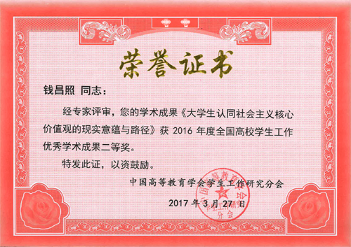 日前,2016年全国高校学生工作优秀学术成果评选结果揭晓,贝博官网共有4篇论文获奖,其中一等奖1项,二等奖3项。