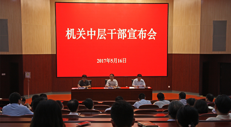 5月16日下午,学校在文化会堂召开机关中层干部宣布会。校党委书记郑文堂、党委副书记郭玉良,机关、教辅全体教职工,后勤各部门主任(经理)、副主任(副经理)参加会议。宣布会由组织部部长李云驰主持。会上,郭玉良副书记宣读了机关中层正职任免决定和部分副职干部的任免决定。学校机关共有24名处级干部续聘原岗,13名干部进行转聘,6名副处级干部得到提拔任用。郑文堂书记发表讲话。他指出,2017年处级干部选拔聘任工作已...