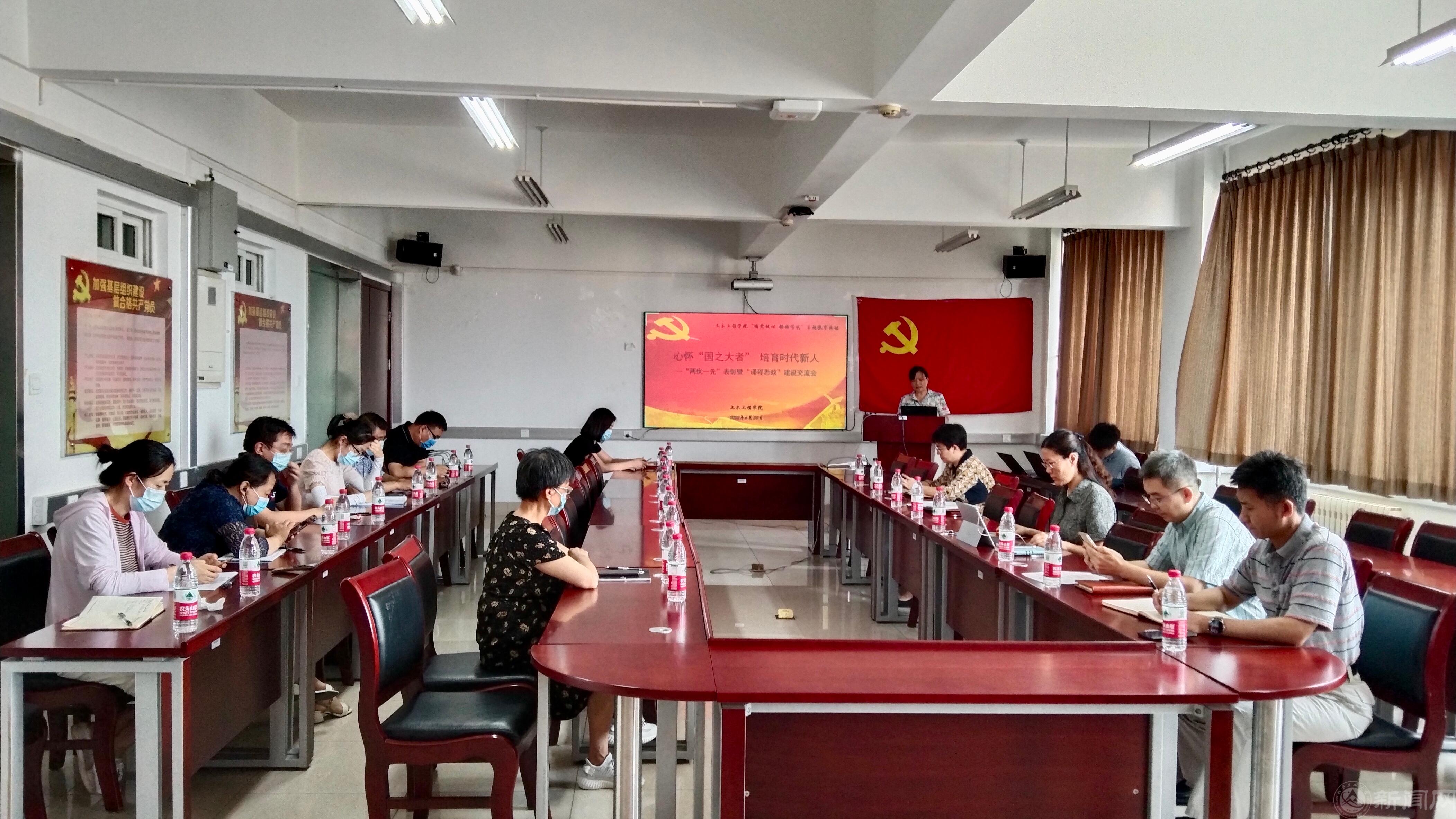 6月30日下午,土木工程学院以线上线下相结合的方式召开以“心怀‘国之大者’,培育时代新人”为主题的学院“两优一先”表彰暨“课程思政”建设交流大会,学院党委委员及部分教师在浩学楼1103会议室参会,其他教师及全体学生党员线上参会。会议由学院党委书记刘婉立主持。学院10位教师结合自身的教学实践,分享了课程思政建设的思考和做法。学院党委副书记冯少杰老师分享了“课程思政”建设的思考,认为高校教师应高站位认识“...