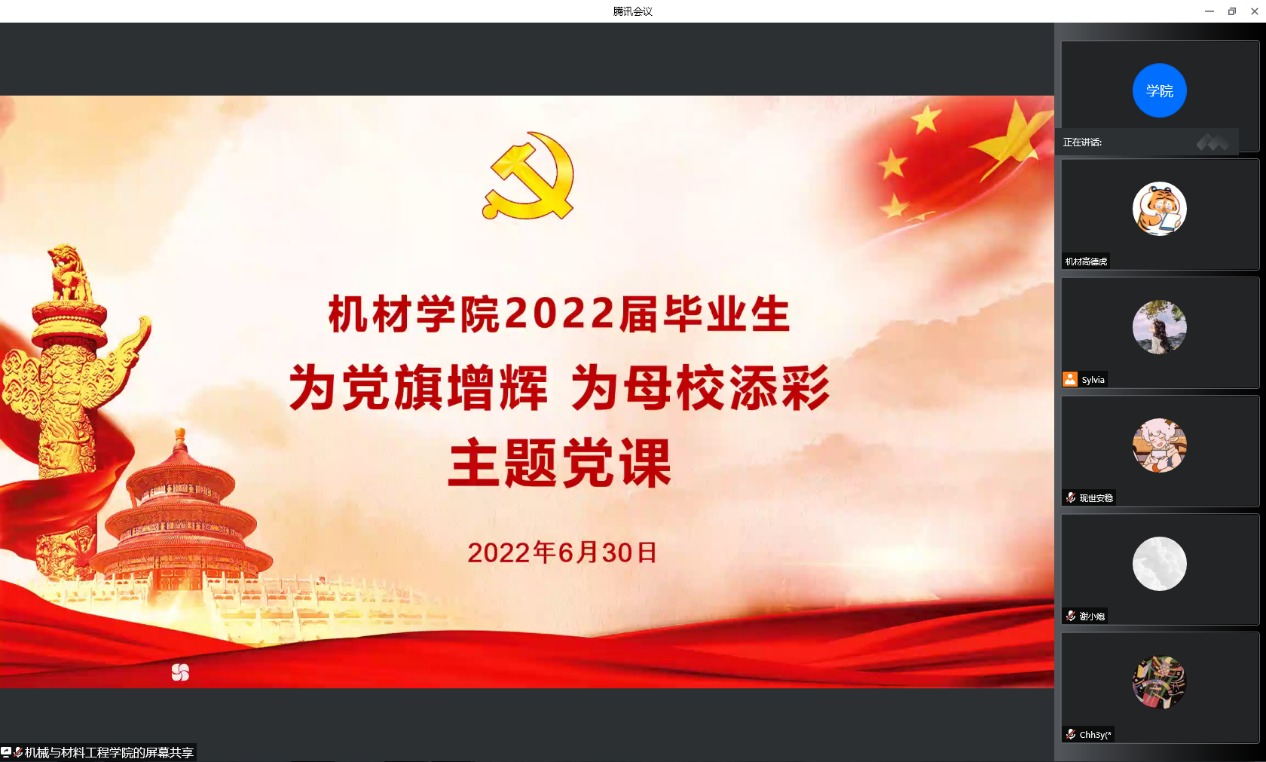 为庆祝中国共产党成立101周年,加强对毕业生党员的思想政治教育,激发青年党员的爱国爱党爱校情怀,机材学院召开“为党旗增辉 为母校添彩”主题党课,院班子集体为2022届毕业生讲党课。全体毕业生党员参加了党课学习。学院党委副书记石卉结合习近平总书记在建团百年庆祝大会上的讲话精神,鼓励毕业生做时代发展的建设者、做科技创新的开拓者、做工大精神的弘扬者、做党的事业的传承者,为实现中华民族伟大复兴,贡献工大学子的...