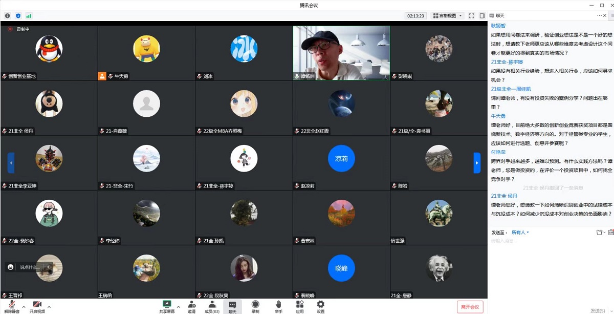 11月19日上午,经济管理学院通过腾讯会议在线举办了“创新创业导航”系列讲座第二讲。投资人兼中国“互联网+”大学生创新创业大赛历届评审专家谭茗洲先生以“创新创业四要素”为题,与贝博官网80余名师生在线交流。讲座由经济管理学院创新创业基地刘冰副教授主持。谭茗洲从想法、产品、团队、执行四个维度对创新创业进行了解读,并从投资人视角分析每个维度下的具体做法,深化了学生对创新创业的理解。讲座结束后,老师和同学们提问...