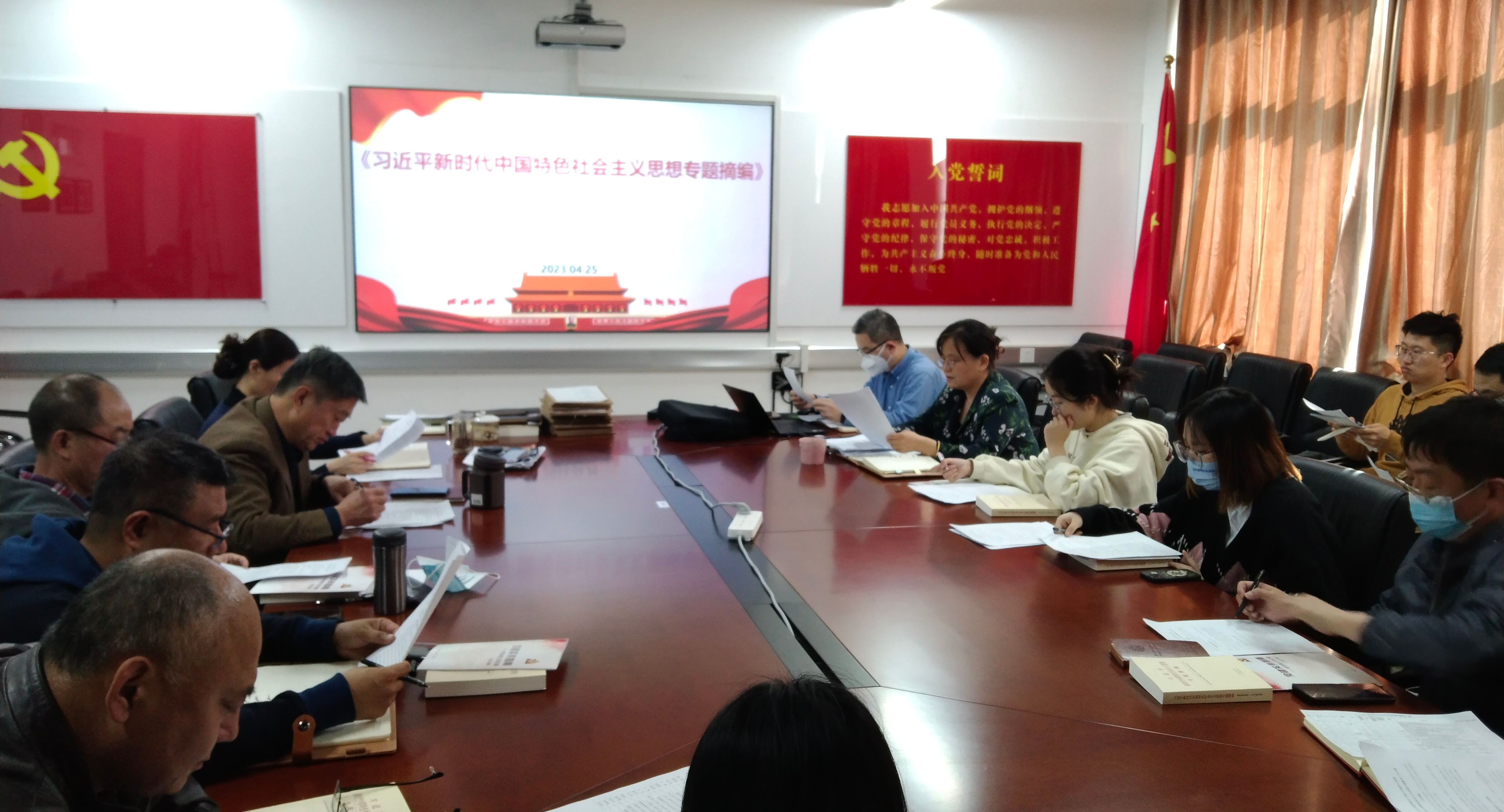 为深入开展学习贯彻习近平新时代中国特色社会主义思想主题教育,4月25日下午,文法学院党支部书记和教工党员共35人,赴北大红楼参观学习,走进红楼,感受庄严古朴外表下生生不息的红色力量,一起穿越历史见证百年前苦难与热血交织的峥嵘岁月。北大红楼始建于1916年,落成于1918年,是中国近代史上李大钊、陈独秀、毛泽东最早传播马克思主义和民主科学进步思想的重要场所,具有重要历史价值。参观过程中,党员教师们认真观看红楼...
