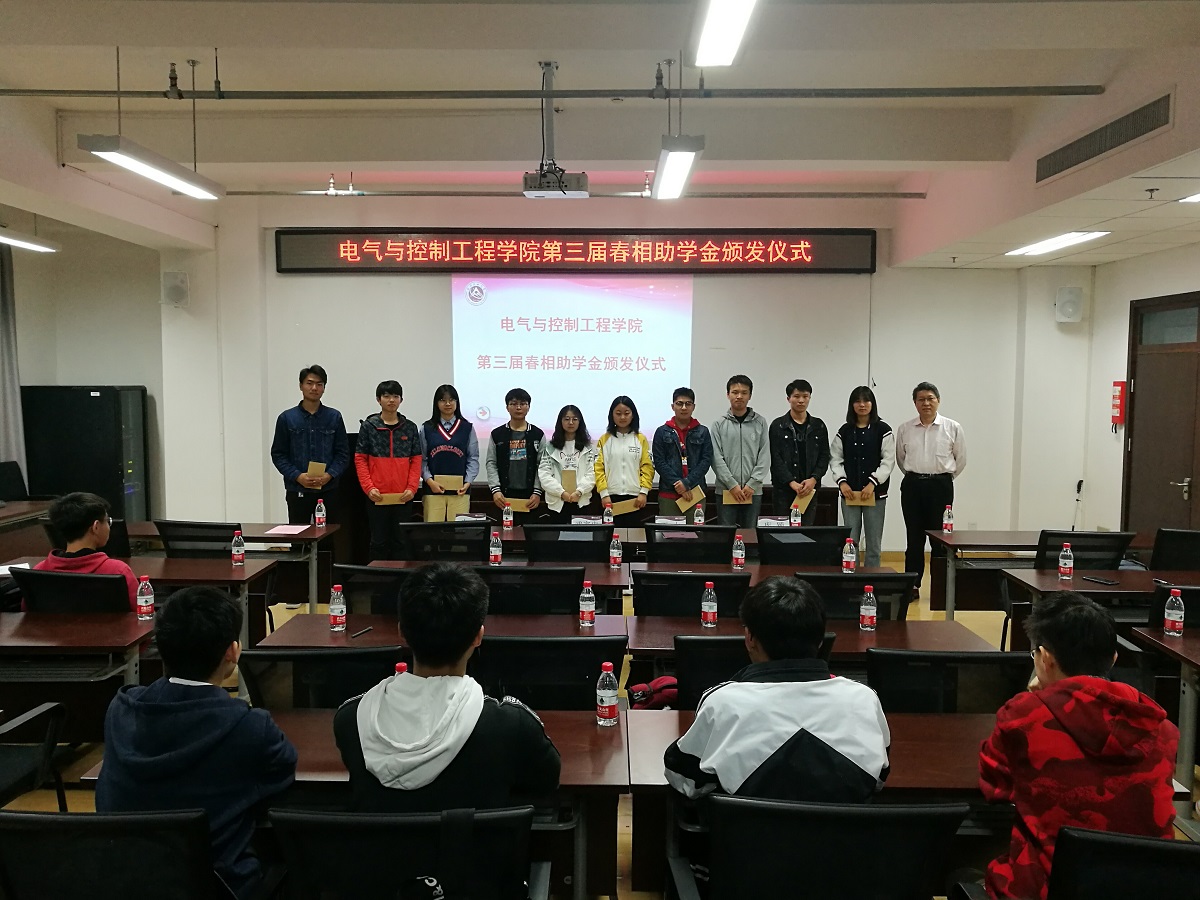 4月24日,电气与控制工程学院在博远楼452举行第三届春相助学金颁发仪式。学院院长王力、特别代表武家申、辅导员库颖及获助的20名学生参加仪式。仪式由院党委副书记史宁主持。春相助学金是由电控学院自动化90级校友、博盈达投资公司总经理兼投资总监陶森设立的,已经连续颁发了三年,资助学生60人次,累计资助15万元。本次颁发仪式陶森校友由于工作繁忙没能亲自到场,他委托校友武家申老师代为颁发此次助学金,同时通过其他方式...