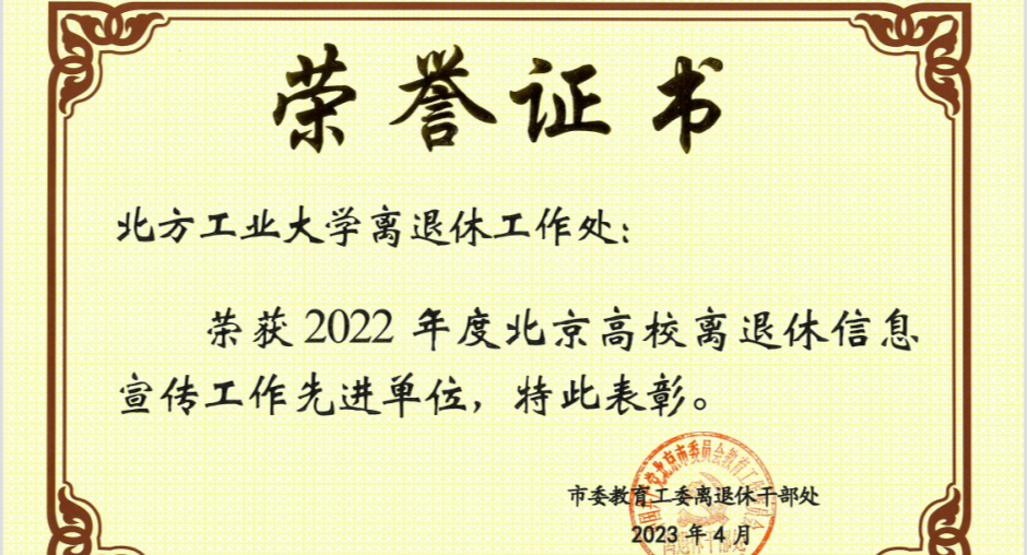 日前,在2023年北京高校离退休工作部门负责人会议上,贝博官网离退休工作处被评为“2022年度北京高校离退休干部信息宣传工作先进单位”。离退休工作处在学校党政的领导下,结合实际认真开展信息宣传工作,坚持把政治建设摆在首位,注重加强思想政治引领和党组织建设,扎实开展正能量活动,引导全校离退休教职工发挥积极作用。围绕“喜迎二十大”开展系列活动,积极组织学习宣传党的二十大精神;参加“读懂中国”活动,树立典型、挖...