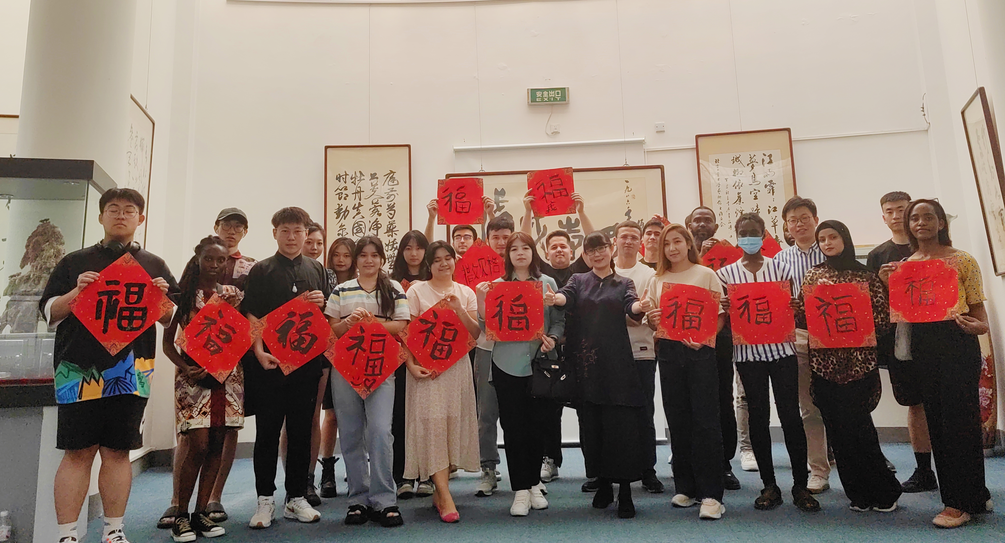 2023年5月18日是第47个国际博物馆日。当天下午,贝博官网艺术馆接待了来自乌兹别克斯坦、刚果金、土库曼斯坦、苏里南、坦桑尼亚等国家的二十余名留学生参观《馆藏精品展》,并现场与艺术馆工作坊的同学们进行福字书写交流,深度体验中国书法的魅力。艺术馆刘琳老师全英文讲解艺术馆内展览的书法、国画、陶瓷和民间工艺品等馆藏精品。美轮美奂的作品引起留学生们的阵阵欢呼赞叹!他们对作品充满了好奇与兴奋,沉浸在中国传统文化的魅...