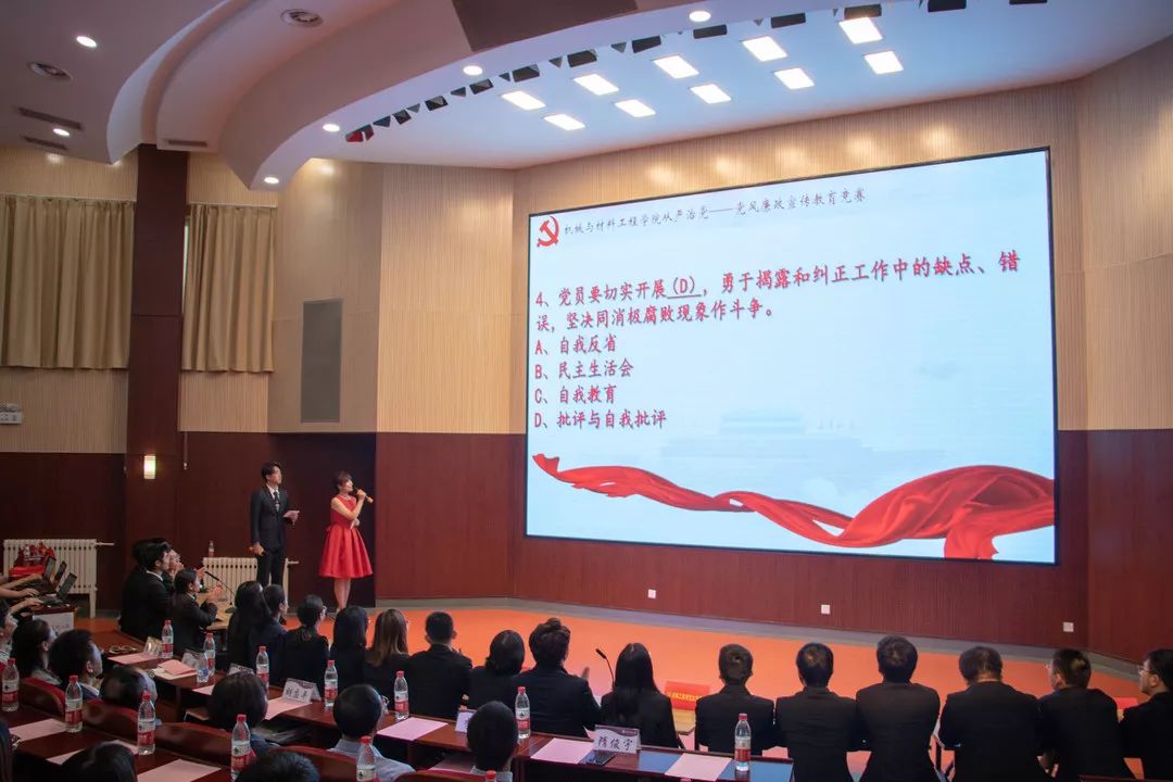 5月16日下午,机械与材料工程学院在文化会堂成功举办主题为从严治党的党风廉政宣传教育知识竞赛。副校长胡应平、纪委书记欧阳媛观看竞赛。校纪委办公室副主任刘姝、机械与材料工程学院班子成员、学院各党支部书记、各年级辅导员以及学生代表参加了活动。在诗朗诵《托起明天永远不落的太阳》之后,知识竞赛正式开始。共有8只学生党支部代表队参加竞赛,竞赛分必答、抢答、选答三个环节。在必答题环节,各队选手渐入佳境,稳扎稳...