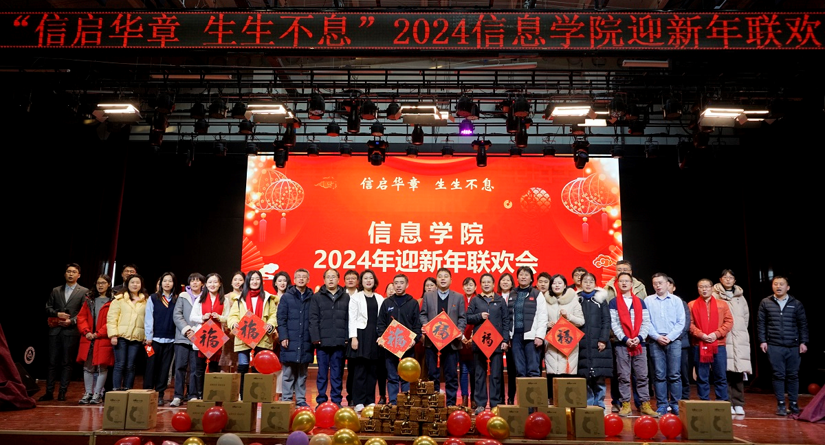 年年辞旧不忘初心,岁岁迎新砥砺前行。1月5日下午,信息学院2023年度工作总结表彰大会暨“信启华章生生不息”2024年新年联欢会在学生服务楼四层隆重举行。校党委副书记史贞军、科研院院长李全明、学工部部长孙宗瑞等领导出席本次活动。校党委副书记史贞军致新年贺辞。他代表学校向全院教师送去新春的祝福,并对大家一年来全体教职工为学校各项工作的辛勤付出表示感谢。他充分肯定了学院过去一年工作中所取得的各项成绩,并一一...