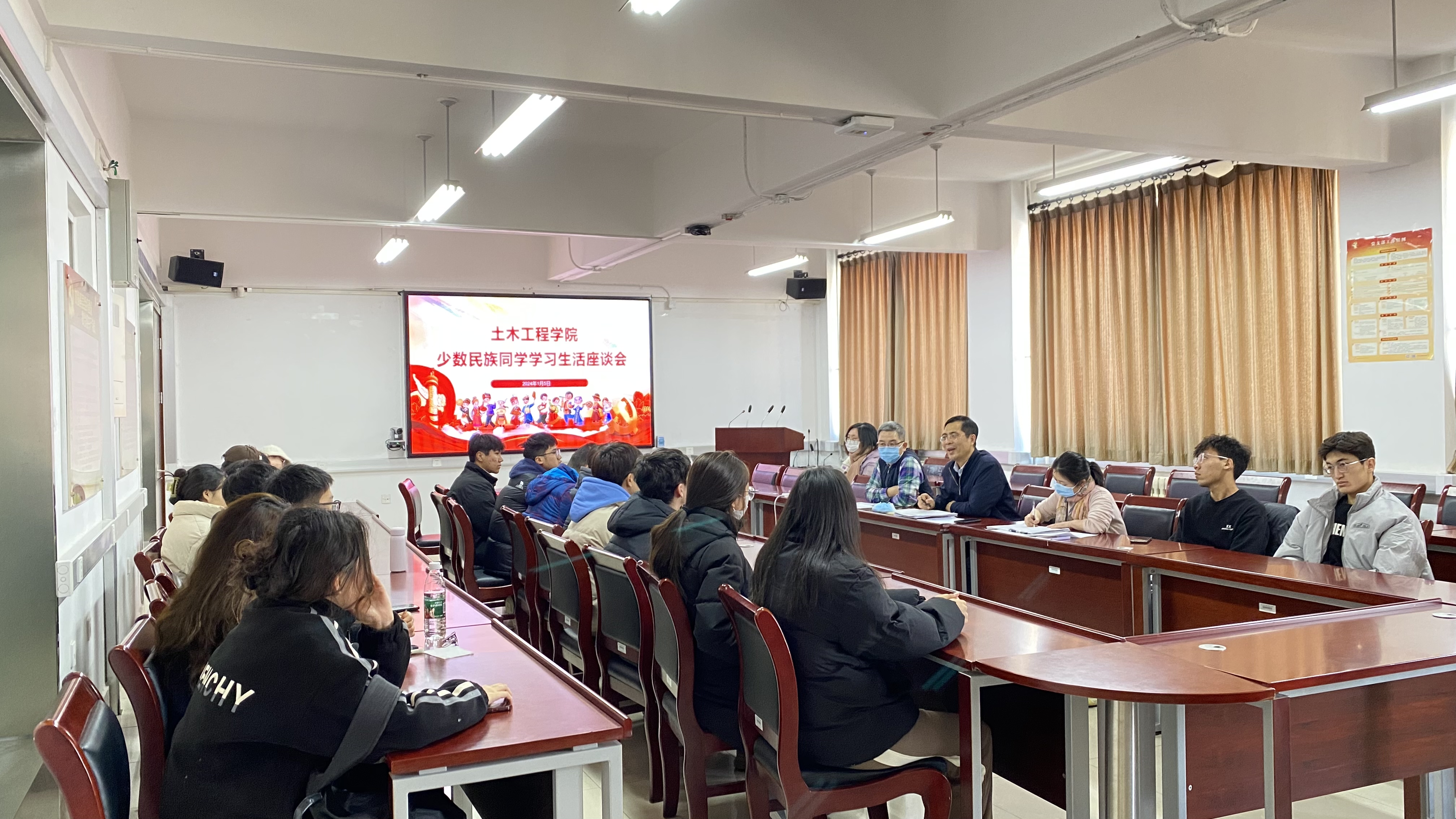 为铸牢大学生中华民族共同体意识教育,落实立德树人根本任务,全面了解少数民族学生的学习生活情况,为学生成长提供有针对性的支持和帮助,1月5日,土木工程学院在浩学楼1103会议室召开少数民族学生座谈会,学院党委书记张少波、副书记冯少杰、各年级辅导员以及少数民族学生代表参加了本次座谈会。会上,同学们围绕在校期间学习、生活、未来发展规划等方面的内容进行了深入交流。冯少杰对同学们提出的问题和困惑做出现场解答和...
