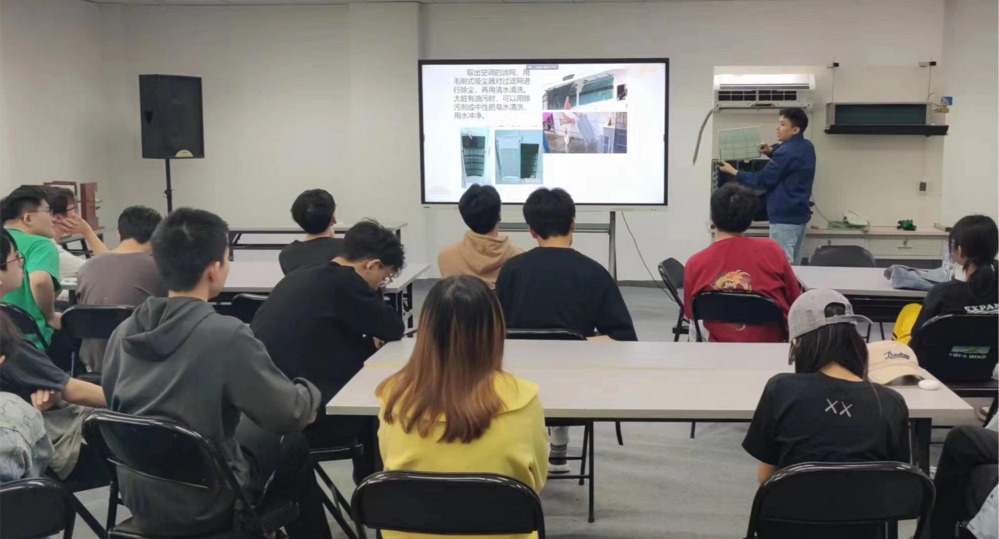 4月25日,空调设备使用与维护公益劳动课在图书信息楼一层会议室开课,吸引了众多对空调技术感兴趣的同学参与。此次课程采取理论与实践相结合的教学方式,为同学们提供了一个深入实践工程专业劳动技能的平台。服务中心设备维修班长贾建新作为主讲老师,介绍了贝博官网中央空调机组类型及分布情况,分析了单分体式空调设备构造、制冷循环到空气调节的工作的基本运作原理,讲解了空调清洗养护的步骤、方法以及空调使用小技巧等内容,演...