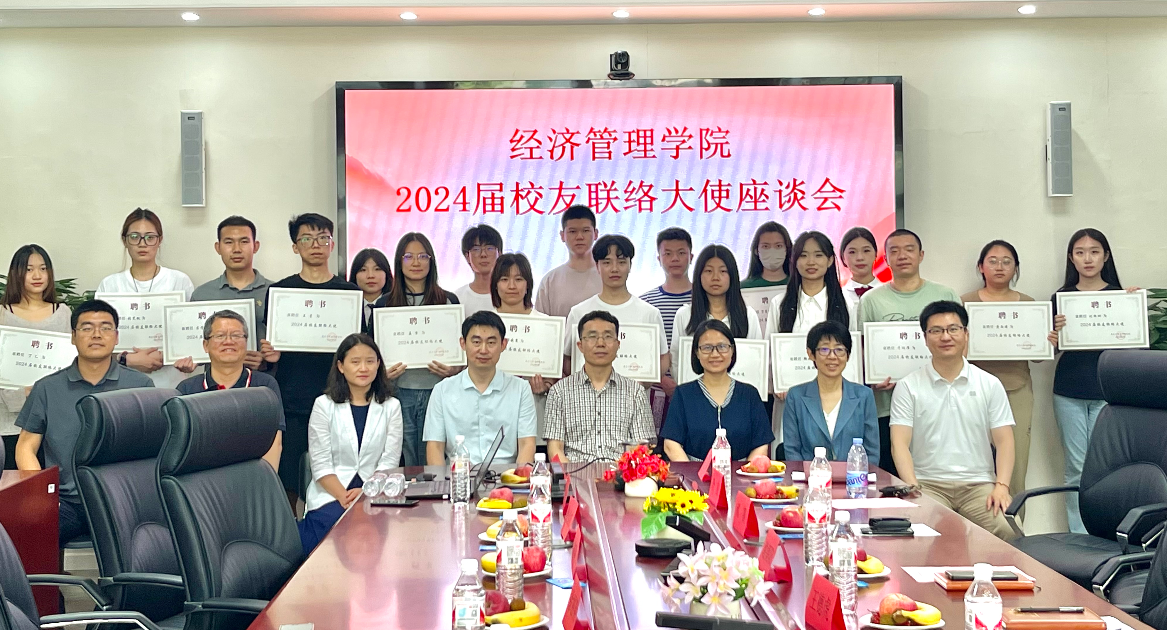 为激发毕业生爱校、荣校、兴校真挚情怀,充分发挥校友作用,引导学院2024届毕业生坚定理想信念,不忘母校培养,凝聚校友力量,精准服务校友,6月18日下午,经济管理学院在励学楼201会议室召开2024届校友联络大使座谈会。学院党委书记谢朝阳,学校校友工作办公室主任王德虎,学院副院长蒋贵凰,学院各系校友会负责人,各班级2024届校友联络大使参加活动。学院党委副书记王帏主持座谈会。王德虎对各位担任校友联络大使的同学表示...