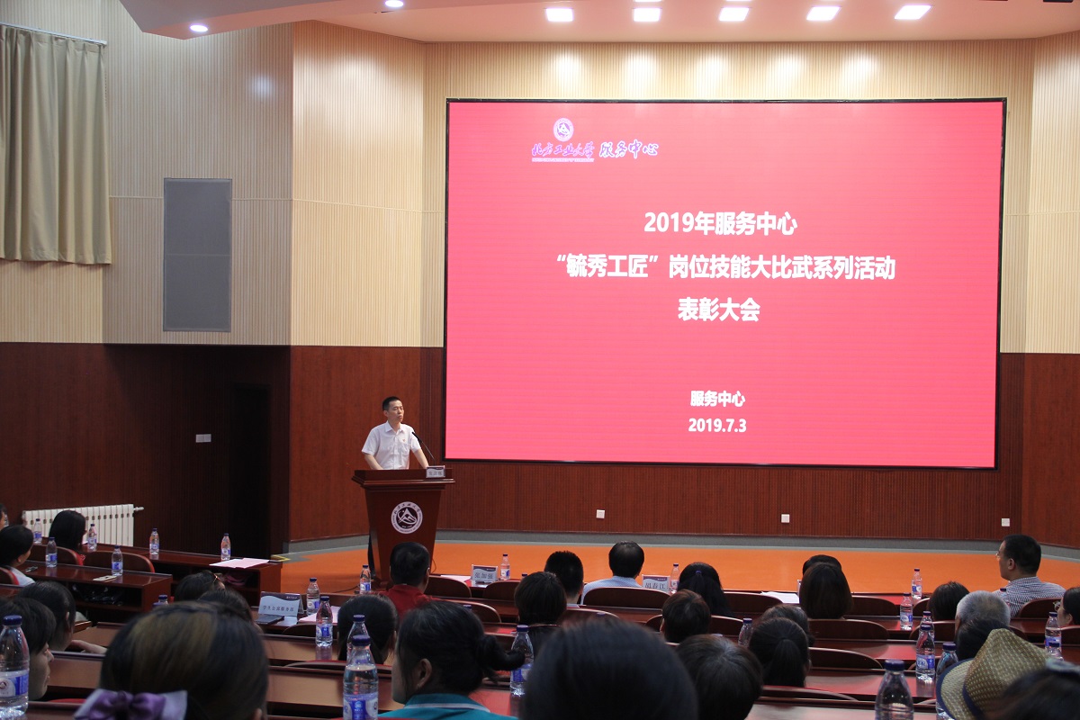 7月3日下午,服务中心在文化会堂召开了2019年“毓秀工匠”岗位技能大比武系列活动表彰会。后勤基建处、服务中心领导,部门正、副经理及班组长、服务中心部分职工等230余人参加了会议。会议由服务中心党委书记张加强主持。全体参会人员一起观看了2019年“毓秀工匠”岗位技能大比武系列活动纪录视频。视频生动再现了大比武活动的整个过程和比赛中多个精彩瞬间,以及现场采访选手们的实况,进一步诠释了“工匠精神” 的内涵,展现...