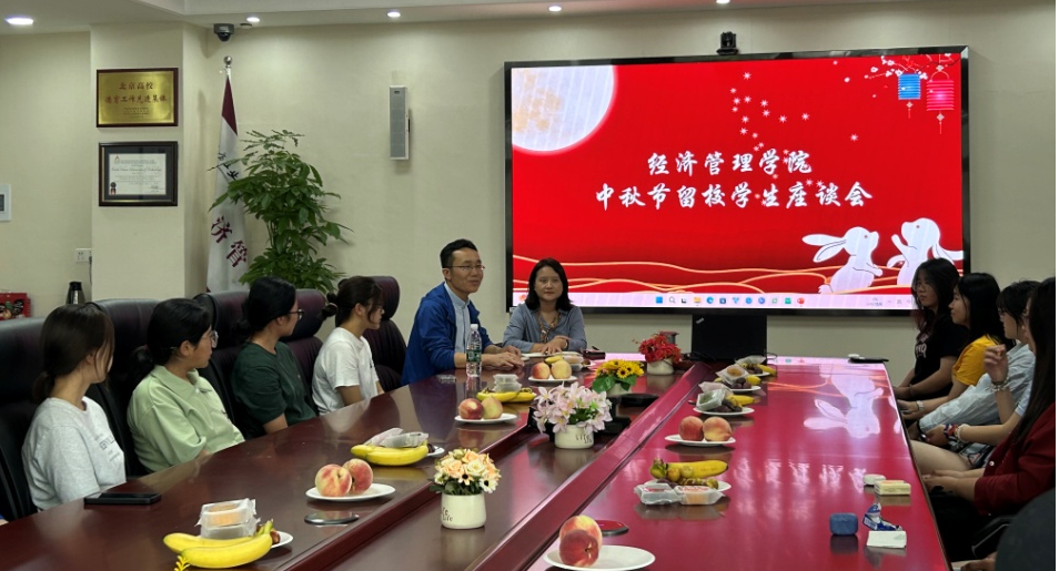 中天一轮满,秋野万里香。9月14日,经管学院于励学楼201召开中秋节留校学生座谈会。学院党委书记谢朝阳、党委副书记王帏、24级辅导员吴芳及20余名24级新生参加了活动。谢朝阳首先对24级新生完成军训任务表示祝贺与慰问,从完善人际关系、提高安全意识等方面,希望同学们尽快适应大学生活。王老师对留校学生们的生活和学习表示关注,建议同学们可以在假期领略北京文化,度过独一无二的中秋佳节。最后,同学们进行活跃的交流发言...