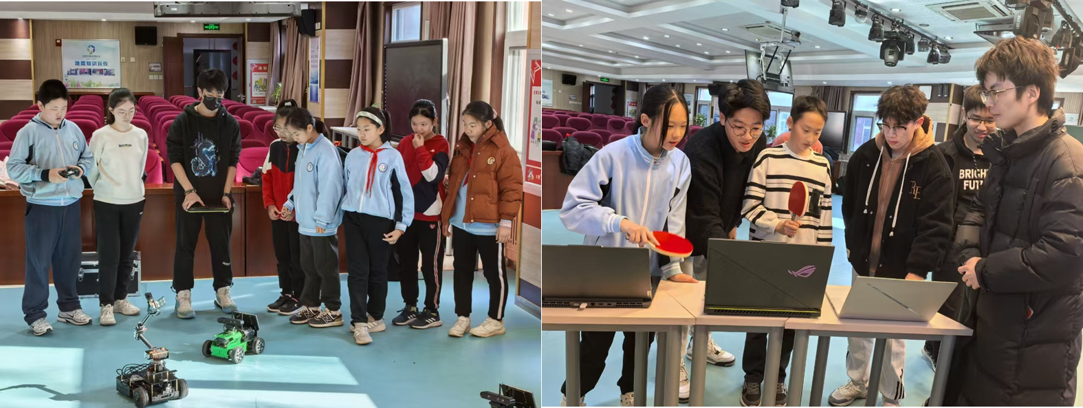 近日,来自电控学院各科技竞赛团队的大学生志愿者,怀揣着对科学的探索和对教育的担当,携八自由度四足机器狗、全向轮英雄机器人、Apollo智能小车、智慧农业自动抓取机器人、数字乒乓球拍等科技作品,走入石景山区实验小学,参加实验小学科技节系列活动,为孩子们展现了一个奇妙的科技世界。大学生志愿者指导孩子们进行操作体验,回答孩子们提出的问题,各项精彩展示引发了实验小学师生的浓厚兴趣,科技节活动取得了圆满成功,...