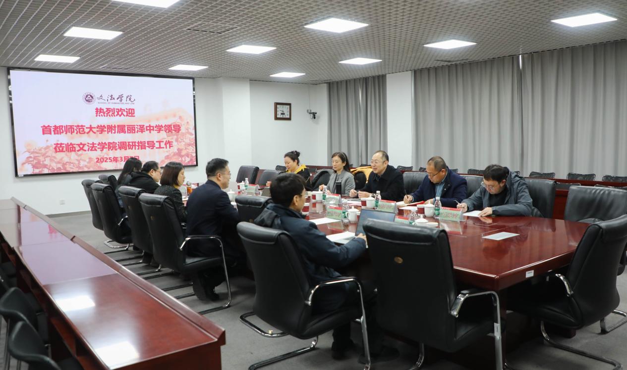 3月7日上午,文法学院与首都师范大学附属丽泽中学开展“党建引领、校际合作:大、中学携手育英才”联合党日活动,丽泽中学党委书记郝玉伟、校长赵海旺等一行5人,文法学院党委书记袁凤识、法律系主任乔慧娟等教师参加了活动,活动旨在加强校际合作,推动教育协同发展,为中学与高校之间的教育衔接搭建桥梁。袁凤识详细介绍了学校高水平工科大学建设情况和文法学院新文科人才培养情况,希望进一步加强文法学院与丽泽中学的交流合...