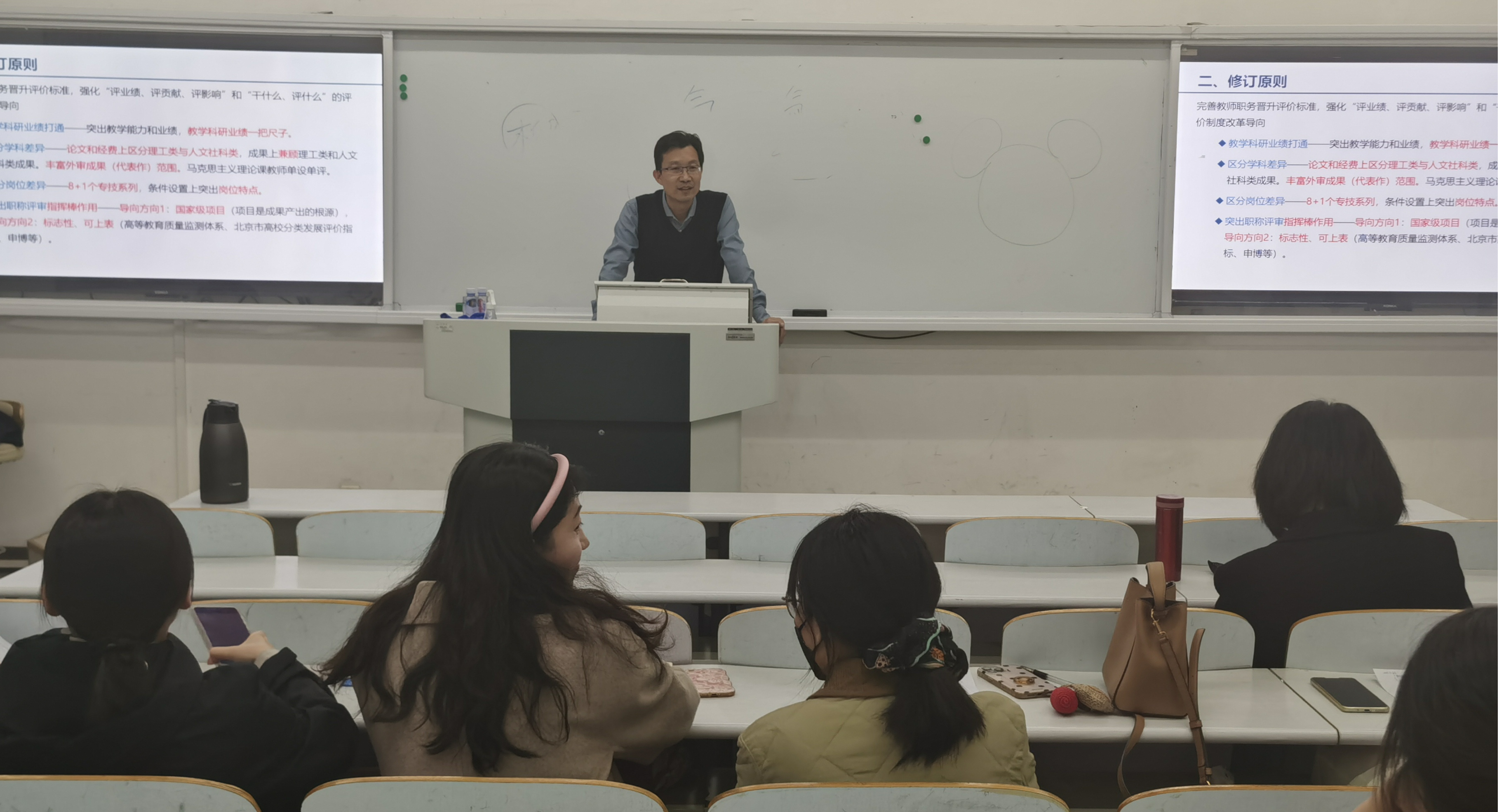 为贯彻落实校党委关于人事人才工作有关决策部署,帮助教师深入了解学校人事人才各项政策,促进教师成长,3月26日下午,理学院邀请人事处副处长焦志伟为理学院教师做宣讲报告。焦志伟详细解读了学校近期出台的职称评审文件,对文件出台的背景、修订原则、修订过程、修订要点及修订的具体条款进行了说明;重点介绍了国家、北京市的高层次人才政策以及学校人才引育体系的框架、主要内容和近年来各人才项目的重点支持领域。焦志伟的...
