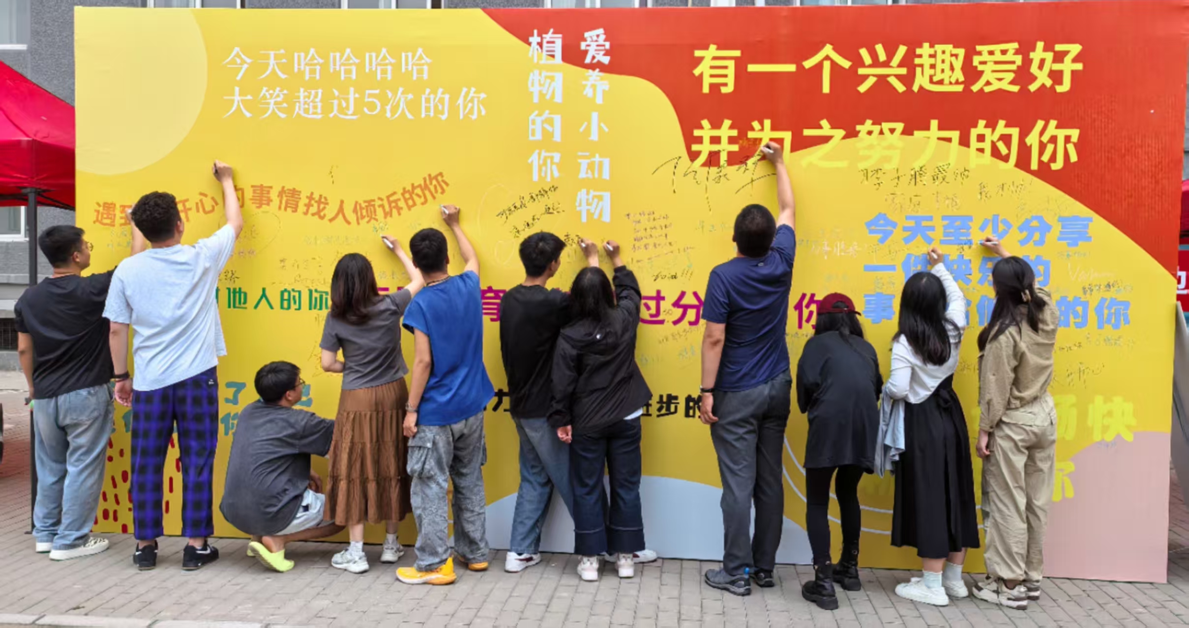 5月20日,学工部在金鼎公寓举办“一站式”学生社区心理健康节文化活动。活动以“美润心田AI育未来”为主题,通过五重“心”体验,结合趣味互动、自我探索、减压游戏、知识科普、心理测试等多元形式,引导学生关注内心成长,塑造积极心理品质。解忧盲盒:参与者在便签上写下近期烦恼,折成纸飞机投入“烦恼箱”;随后随机抽取他人的“烦恼飞机”写上解忧的话语,暖心回应,相互治愈。寻人启事:参与者在与自身特质匹配的区域签...