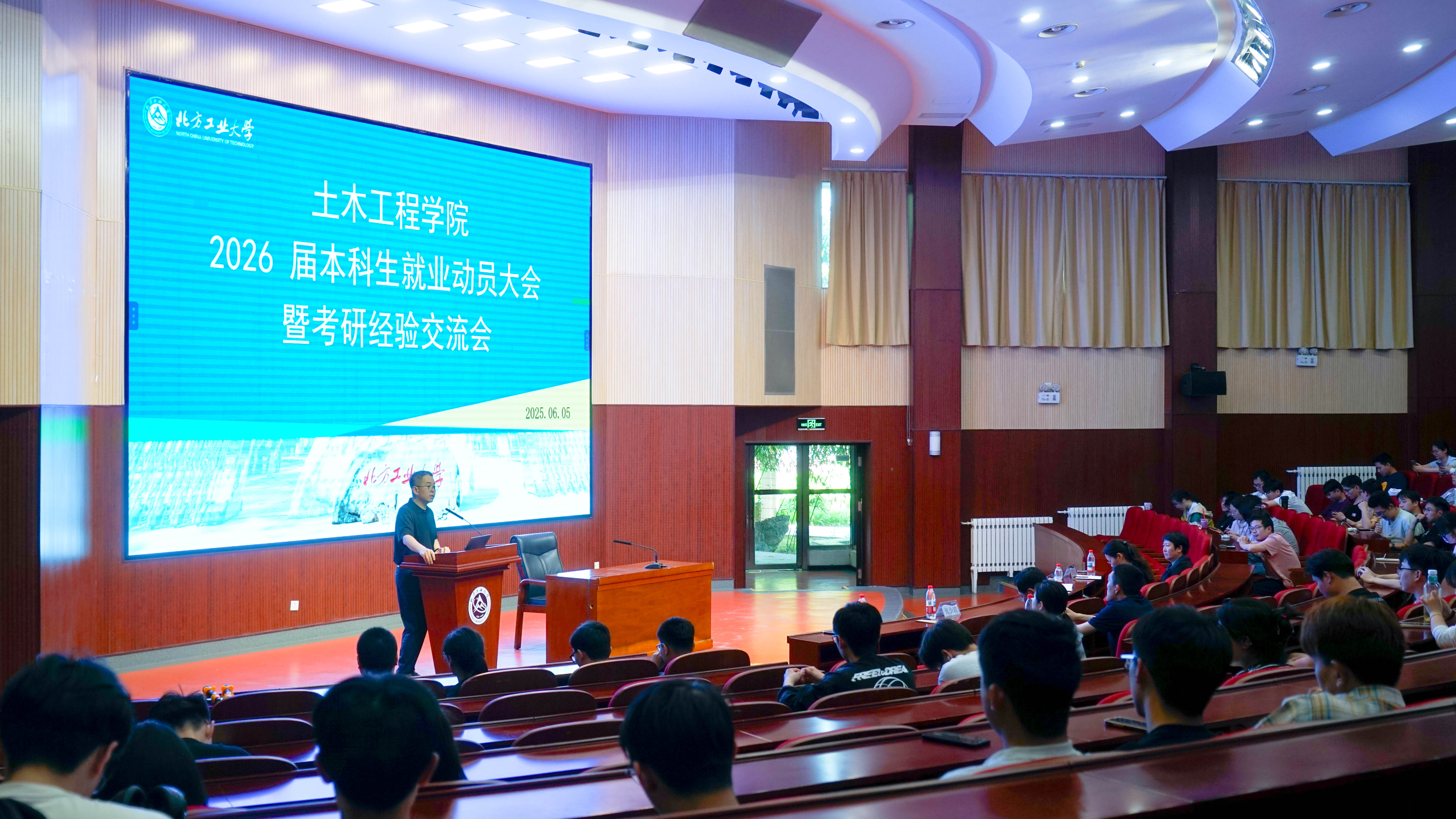 6月5日,土木工程学院在文化会堂举办2026届本科生就业动员暨考研经验交流会。学院领导班子成员、班导师、辅导员及全体2022级本科学生参加了大会。会议由党委副书记冯少杰主持。会上,院长纪颖波全面分析了土木行业发展现状,分享了自己对大学生未来职业规划和考研深造的见解,希望同学们合理规划就业考研目标,制定切实可行的计划,并为之不懈努力。她勉励同学们积极投身国家建设事业的一线,勇于到基层去锻炼,主动争取、紧紧...