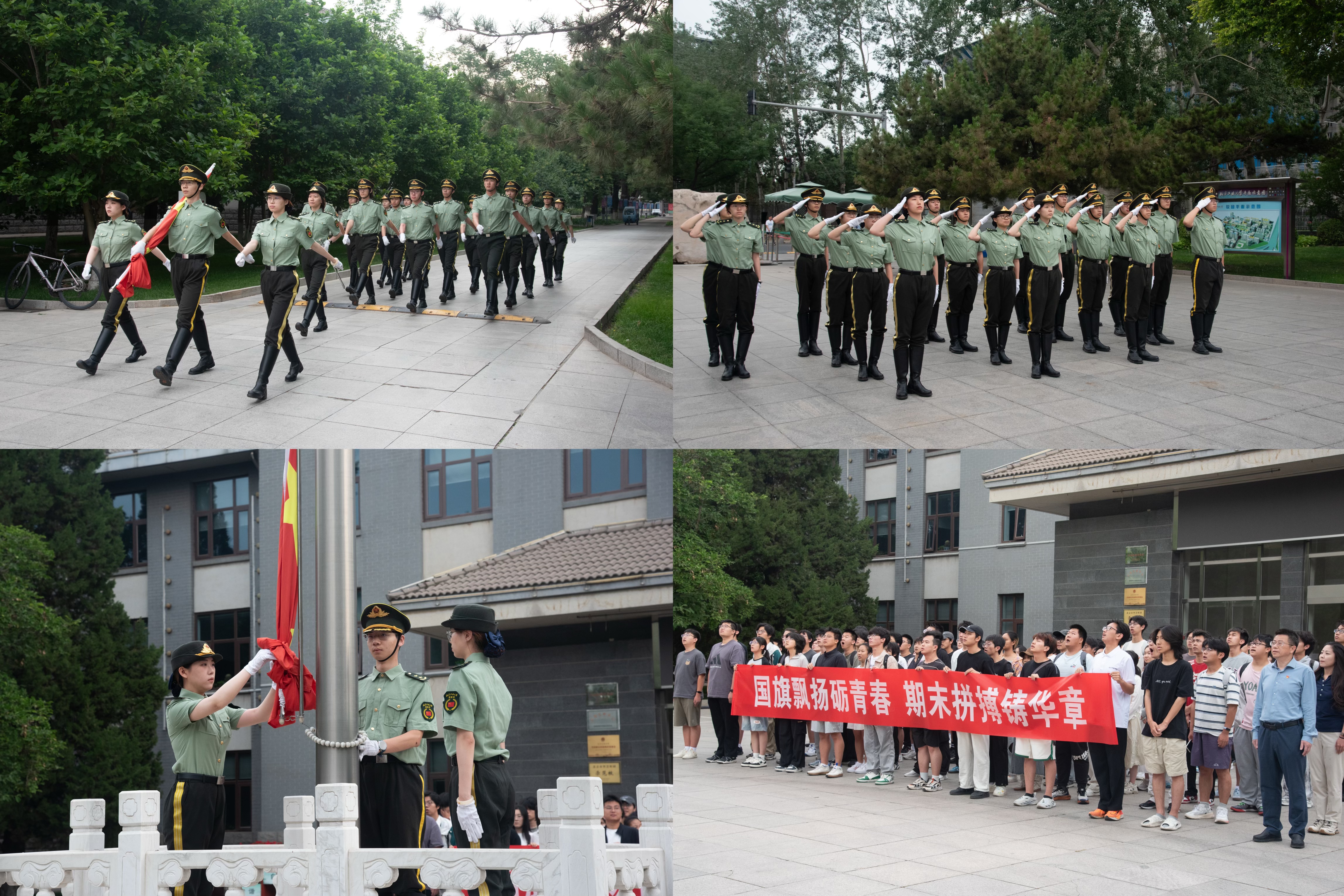 为加强学院学风建设,引导广大青年坚定不移听党话、跟党走,做堪当民族复兴重任的时代新人,6月9日至13日清晨,机材学院举行“国旗飘扬砺青春,期末拼搏铸华章”主题升旗仪式。学院领导班子、各年级辅导员以及学院全体党支部成员参加了本周升旗仪式。在全体师生的注视下,国旗班的队员们踏着整齐有力的步伐,喊着激昂嘹亮的口号,护送着鲜艳的五星红旗进场。伴随着《义勇军进行曲》,五星红旗冉冉升起,全体师生行注目礼,高唱...