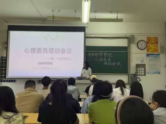 为宣传心理知识,提高心理委员、宿舍互助志愿者的工作素养,以便更好的保障大学生心理健康。万象城awcsport官网于2023年10月24日下午五点在理工楼2208教室开展了“心理委员培训会议”的座谈会。此次活动由文明自律委员心理健康部组织,参加本次活动的有万象城awcsport官网各班心理委员、宿舍互助志愿者,由心理健康部干事张斯文主持讲说。