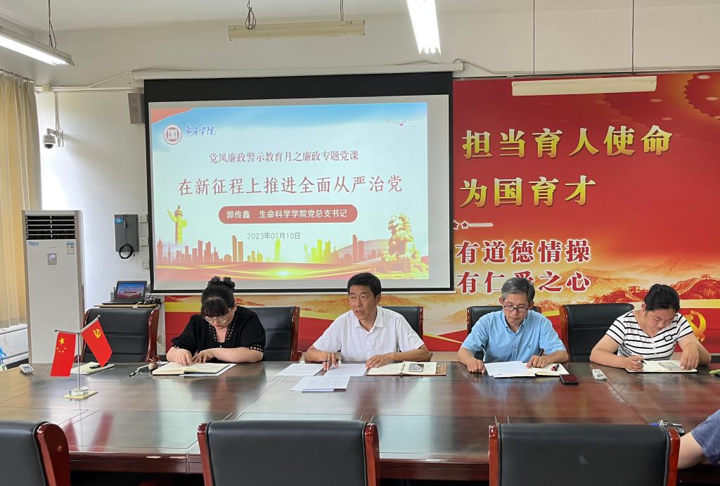 党课指出,全面从严治党必须持之以恒、毫不动摇,有腐必反,不可心存侥幸之心。广大党员要进一步增强政治纪律和政治规矩意识,筑牢拒腐防变的法纪底线,针对师德师风、选人用人、评优评先、三重一大等廉政风险点,做实做细排查,做严做好防控。严格规范“八小时内外”言行,自觉净化工作圈、社交圈、生活圈、朋友圈,始终廉洁奉公、安心乐教、依纪依规依法履职。
