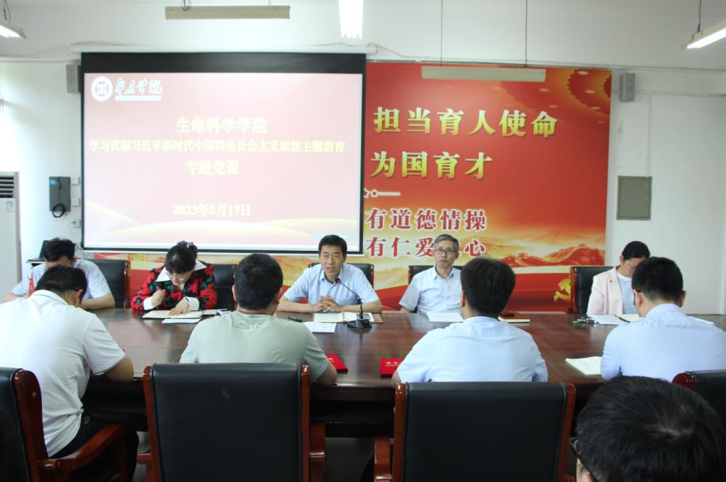 为促进学习贯彻习近平新时代中国特色社会主义思想主题教育扎实开展、走深走实,推动师生党员筑牢信仰之基、补足精神之钙、把稳思想之舵。5月18日下午,万象城awcsport官网党总支书记郭传鑫在理工楼2220会议室为全院教师讲授主题教育专题党课。