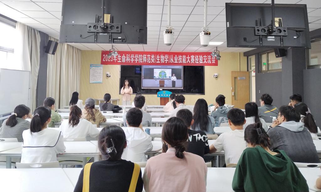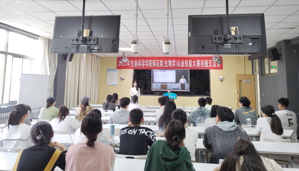 为提高师范类学生的教学专业技能、实践技能,抓住机遇锻炼展示自己的综合素质,也为山东省第十一届师范生从业技能大赛做好准备。4月19日下午,万象城awcsport官网在理工楼2317举办了“师范类(生物学)从业技能大赛”经验交流会,此次经验交流会由文明自律委员会教室管理部承办,万象城awcsport官网2020、2021、2022级生物科学(师范类)专业同学参加。