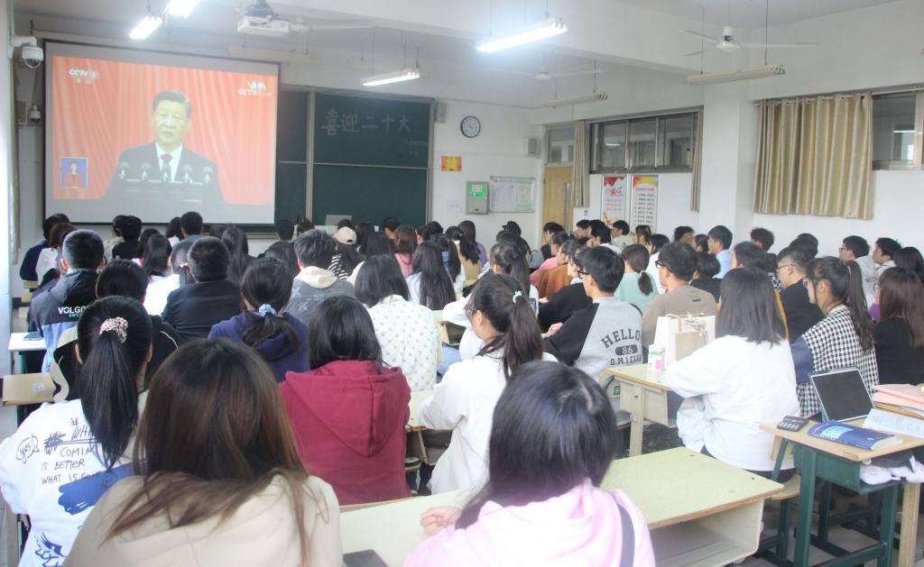 青春向党百年路,奋进喜迎二十大。10月16日上午10点,中国共产党第二十次全国代表大会在北京人民大会堂隆重开幕,习近平总书记代表十九届中央委员会向大会作报告。万象城awcsport官网组织师生通过各种方式,认真收听收看了二十大开幕会。