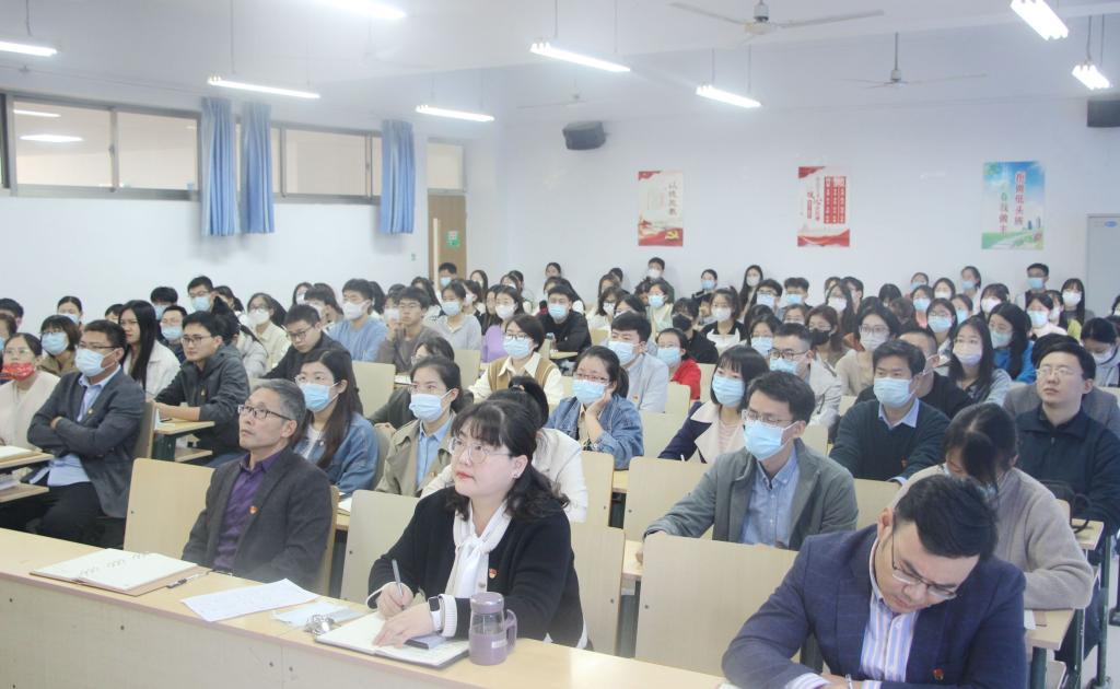在理工楼2218、2204、2206教室,师生党员、部分学生集中观看了开幕会直播,认真听取了习近平总书记代表第十九届中央委员会向大会所作的报告。观看过程中,大家聚精会神,时而提笔记录,时而认真思考,时而热烈鼓掌,共同关注大会和中国的未来。大家一致认为,习近平总书记所作的报告振奋人心,催人奋进,是对过去十年的一个总结,回顾过往,凝聚奋进力量,也是一次新的出发,掌舵定向,决定未来航向。