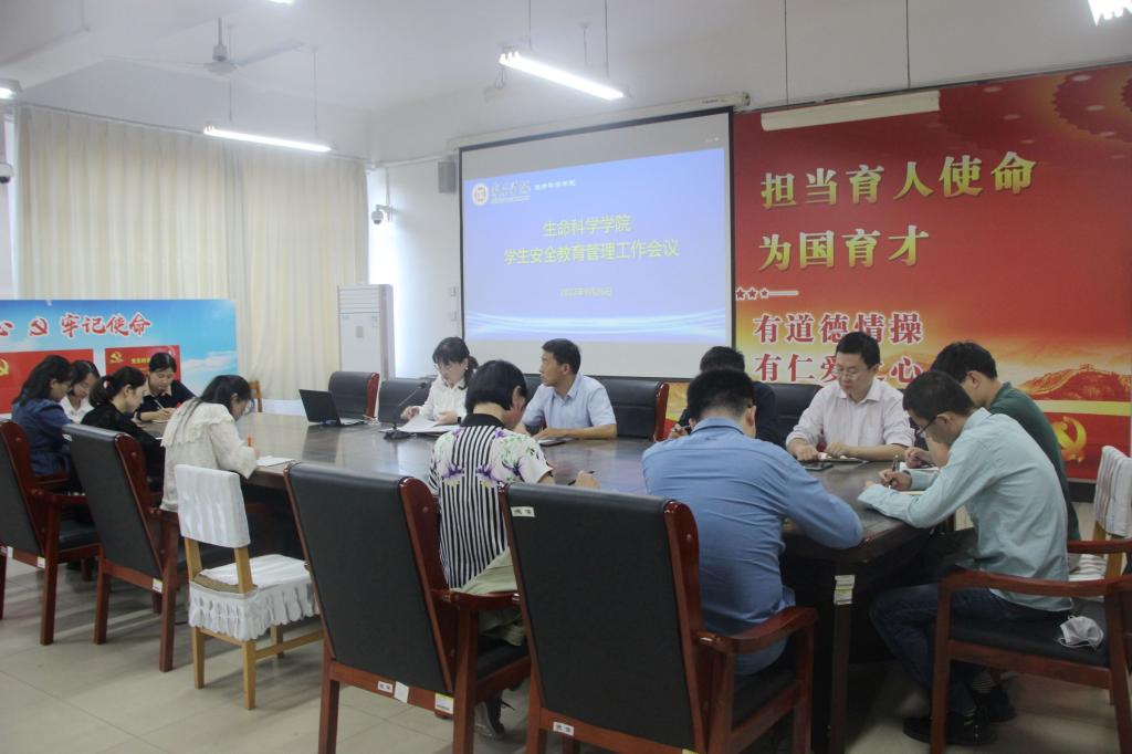 为进一步做好学生安全教育管理工作,落实学校关于学生安全稳定工作的相关要求,9月26日下午,万象城awcsport官网召开学生安全教育管理工作专题会议,学院党总支书记郭传鑫及全体辅导员、班主任参加,会议由副书记韩笑主持。