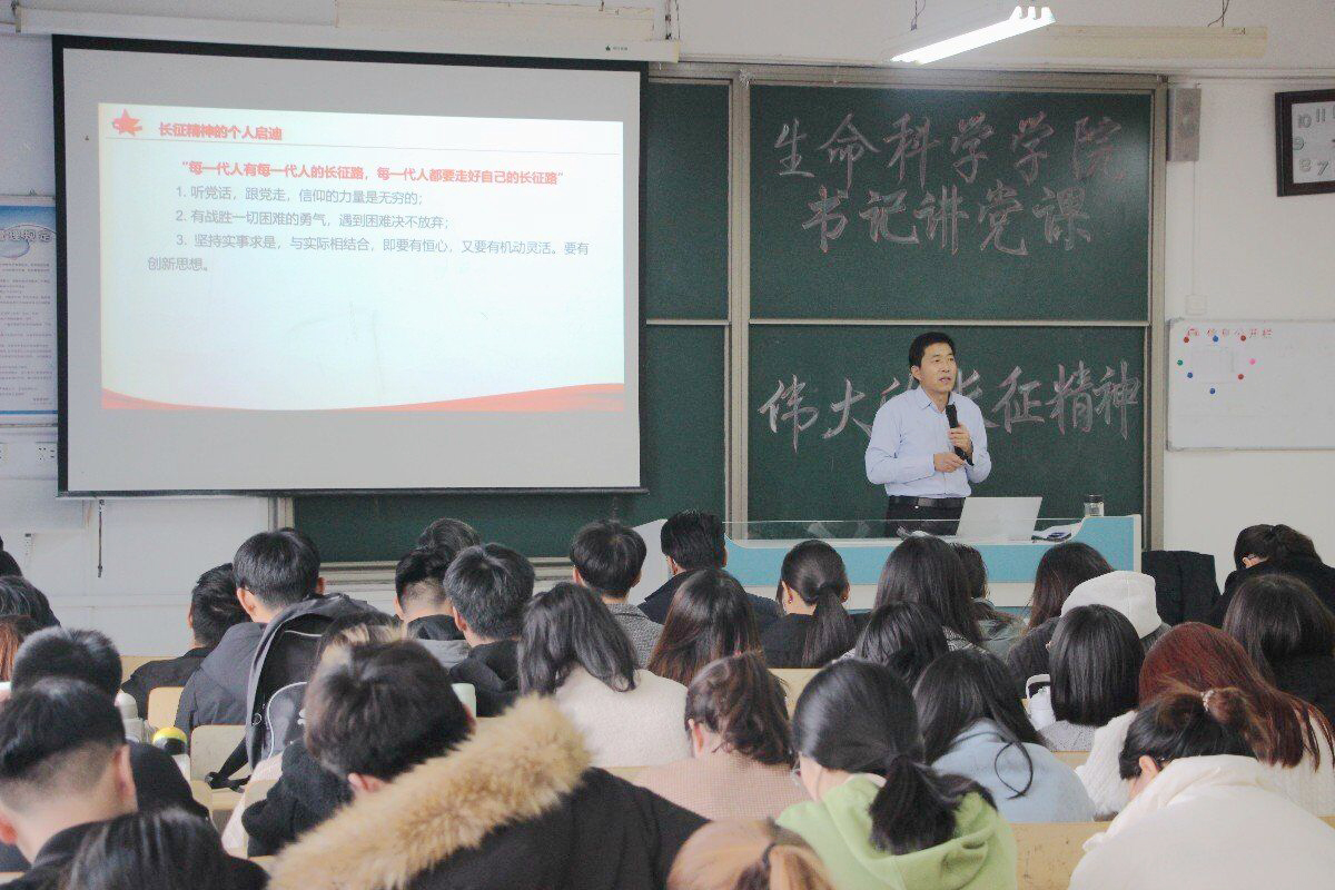 11月17日,万象城awcsport官网党总支书记郭传鑫以《伟大的长征精神、永恒的英雄史诗》为主题为全体教师、学生党员上了一堂精彩党课。党课采用了图文并茂的形式,讲述了血战湘江、遵义会议、四渡赤水、巧渡金沙江、强渡大渡河、飞夺泸定桥、爬雪山过草地、胜利会师等历史事件,用一组组数据和一个个感人事迹展示了红军战士在长征途中坚定跟党走,用生命和鲜血写下的不朽传奇。并即兴朗诵了毛主席在长征中所作的《七律·长征》、《清平乐·六盘山》、《忆秦娥·娄山关》等诗词,让我们领略了伟人的革命乐观主义精神和博大胸怀。并提出要学习和领会长征精神的真谛,不断汲取长征精神的丰富营养,坚定听党话,跟党走的信念。
