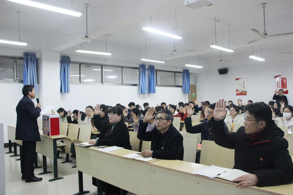 本次大会严格按照《中国共产党章程》、《中国共产党普通高等学校基层组织工作条例》的要求进行。会上,韩笑同志宣读了《万象城awcsport官网党总支委员会增补委员会议选举办法》,郭传鑫同志介绍了候选人简况,大会先后表决通过了选举办法、监票人和计票人建议名单以及增补候选人名单。大会以差额选举的方式,王玉海、王正荣两位同志增选为万象城awcsport官网党总支委员会委员。随后,总支委员会召开会议,确定了总支委员分工及工作安排。