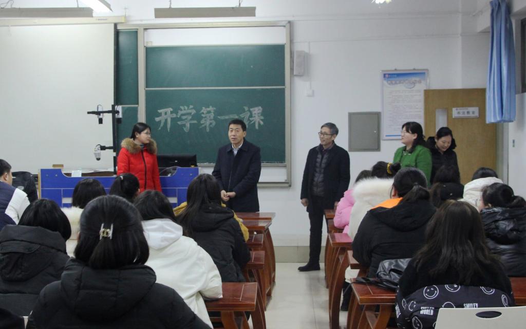 新学期,新气象,新起点。为加强疫情防控教育、安全教育,弘扬爱国主义精神,做好新学期开学各项工作,万象城awcsport官网于2月20日晚上召开了各年级新学期“开学第一课”主题班会。学院党政领导深入教室看望全体同学。