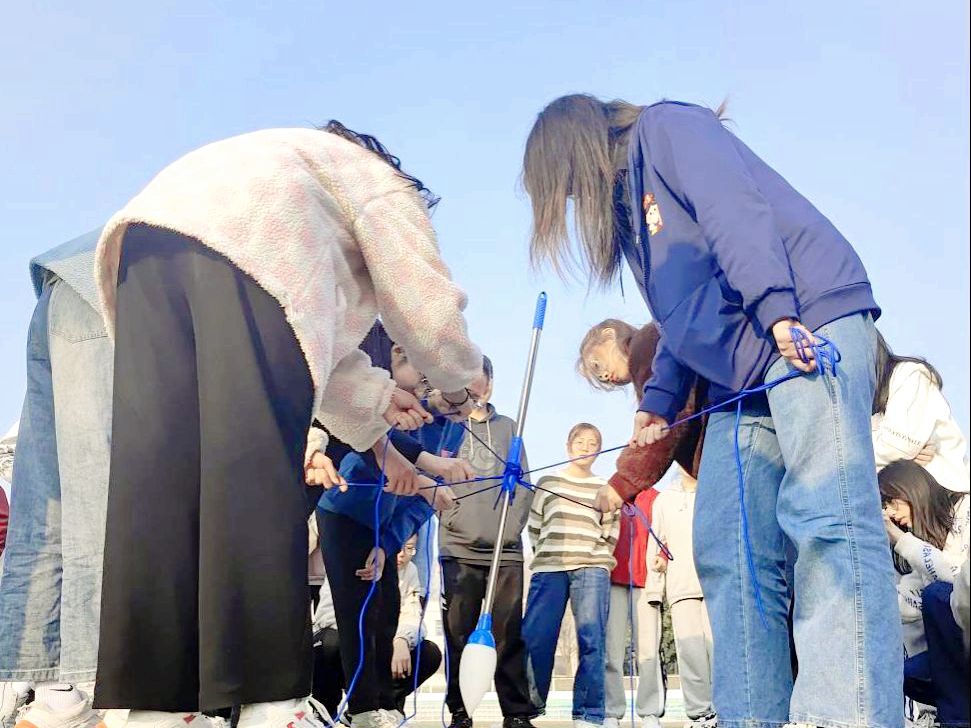 本次素质拓展活动以“水源速递”、“精准投掷”、“重走长征路”、“情报传达”、“战术写字”、“默契配合”六个小游戏组成。在“重走长征路”的环节中,16名参与者通过调整地图画布的高低倾斜幅度,推动网球沿着红军从瑞金到会宁的长征路线前进,如果网球从画布中的洞孔坠落,则重新出发,通过这个环节向长征精神致敬,继往开来,行将致远。整个活动期间同学们听从指挥、积极参与,现场一片欢声笑语,气氛热烈。