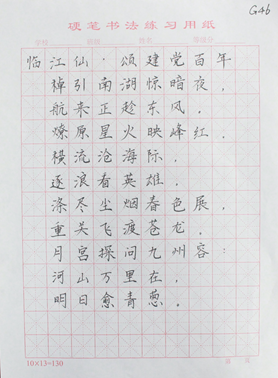本次比赛包括钢笔字、粉笔字、毛笔字三个比赛项目,共征集作品196幅。参赛选手们认真准备,紧密围绕主题,将情感融入笔尖,以优美诗词歌赋等形式来表达对党的爱戴和对国家的感恩。评委老师们对参赛作品逐一从主题、整体布局、笔画结构等方面进行了评审,分别评选出了各比赛项目的一、二、三等奖获奖者。所有作品主题鲜明、感情真挚,很好地抒发了他们的爱党爱国之情。