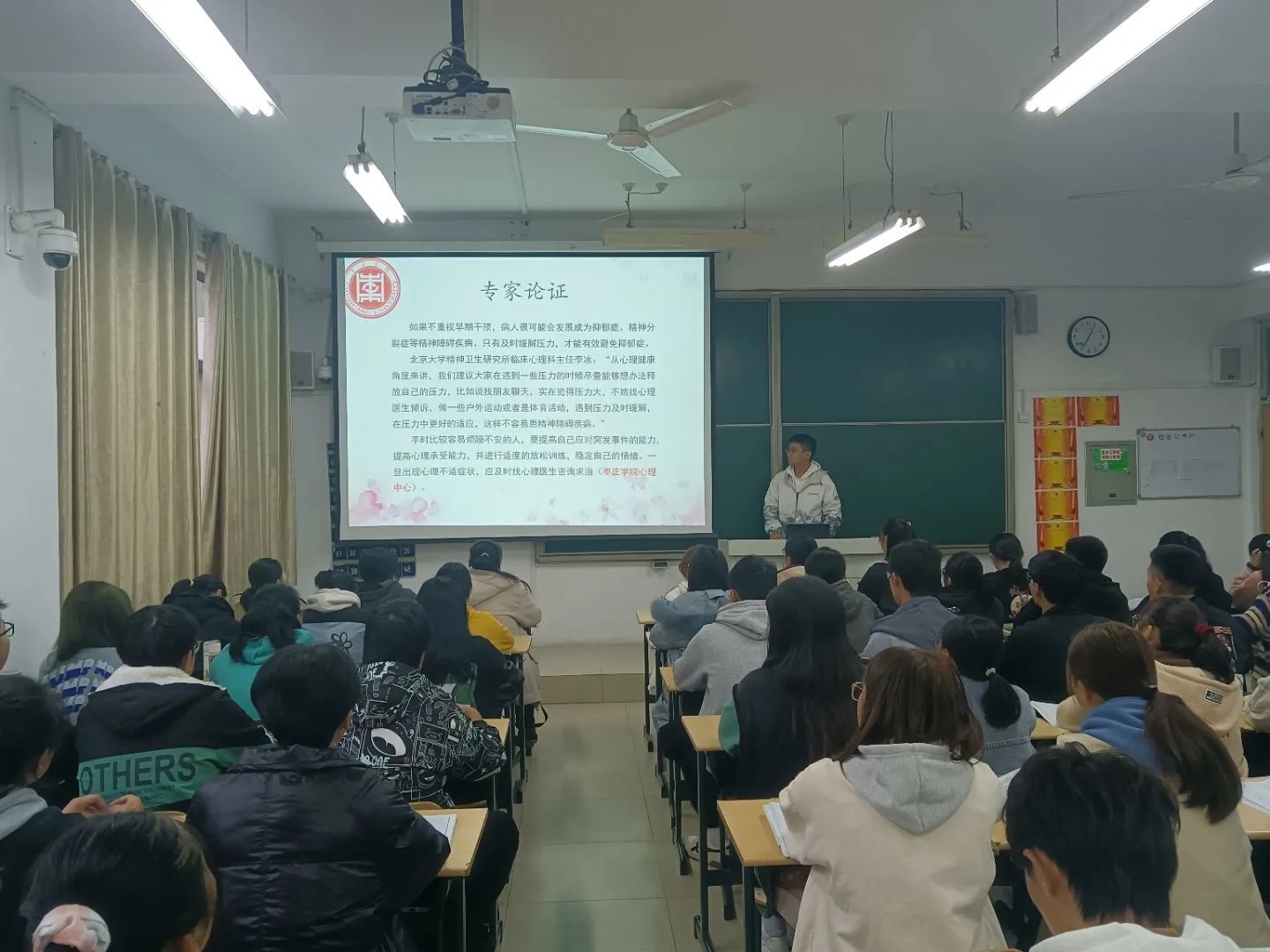 本次班会丰富了学生们对心理健康知识的了解、预防和应对措施,对于帮助所有大学生健康成长成才意义重大。