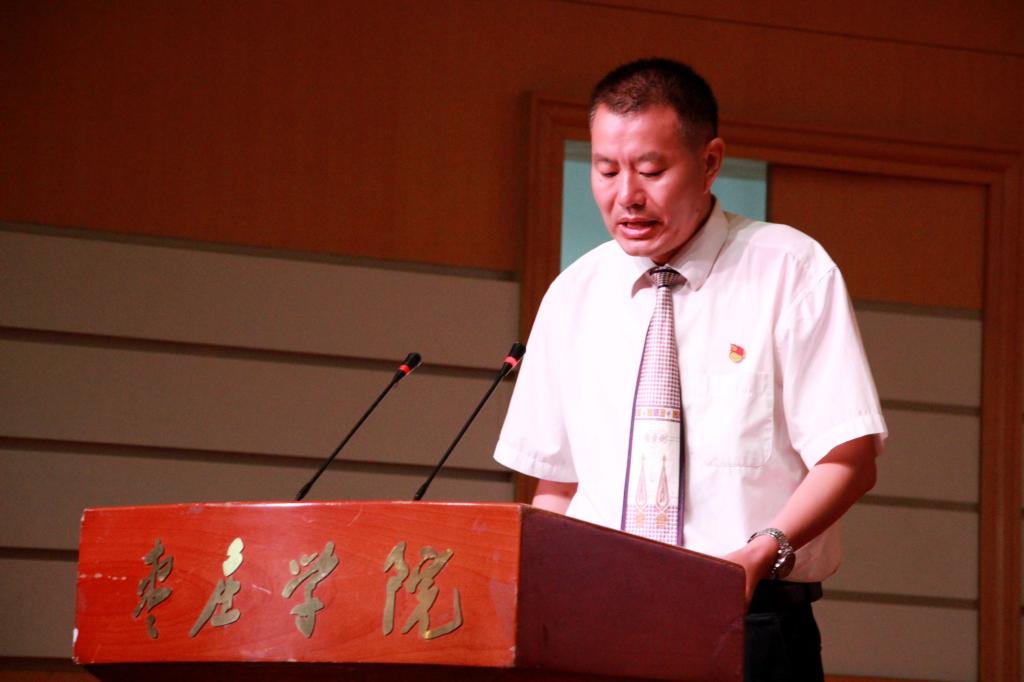 仪式在嘹亮的国歌声中正式开始。副院长王玉海教授宣读了《枣庄学院学位评定委员会关于授予安子欣等109名同学学士学位的决定》。