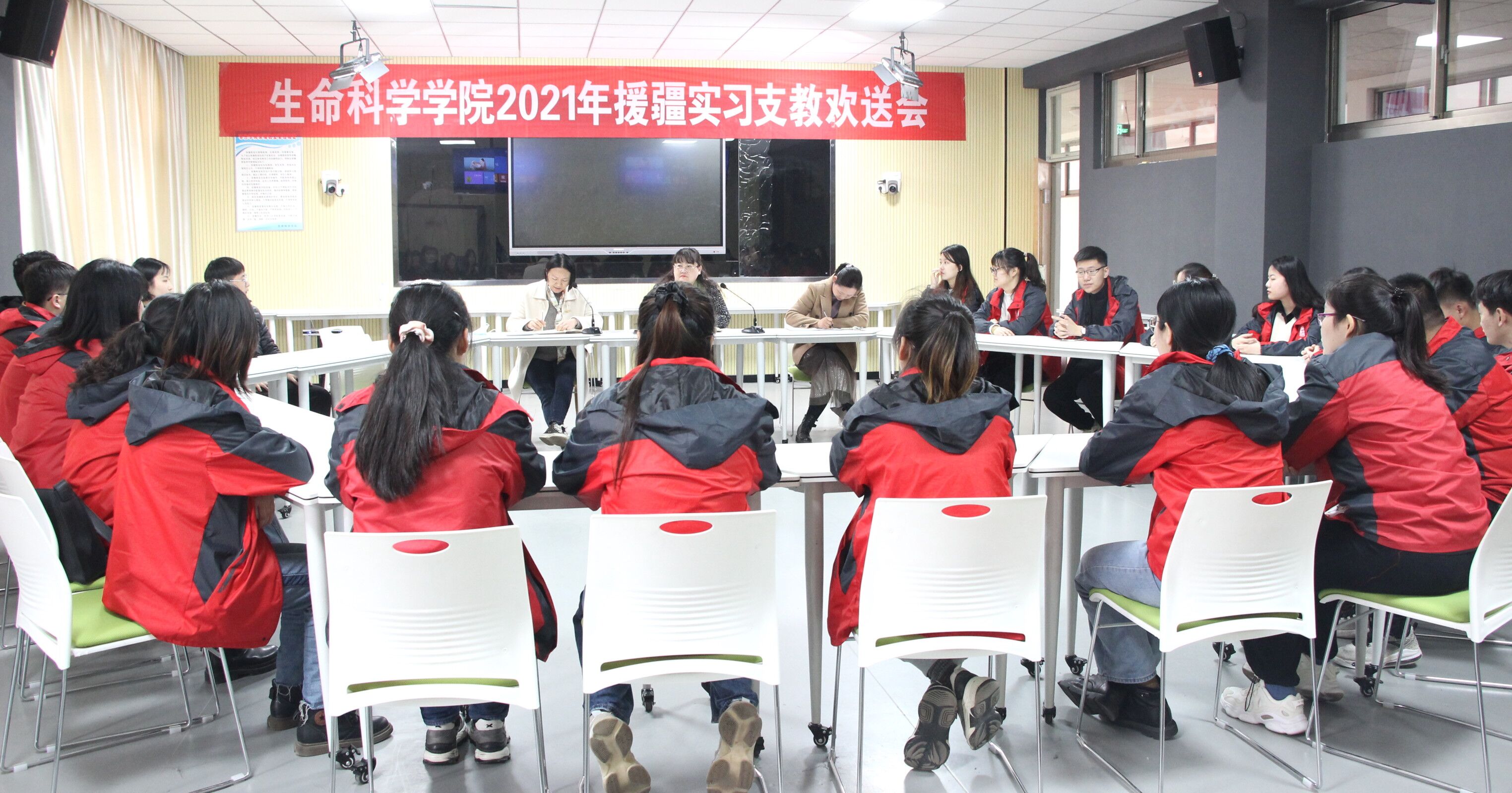 会上,20位支教学生一致表示,一定牢记学院领导和老师们的嘱托,珍惜这次援疆实习支教机会,认真学习,勤奋工作,以优异的成绩完成这次实习支教工作,不辜负学校和学院领导和老师的厚望。