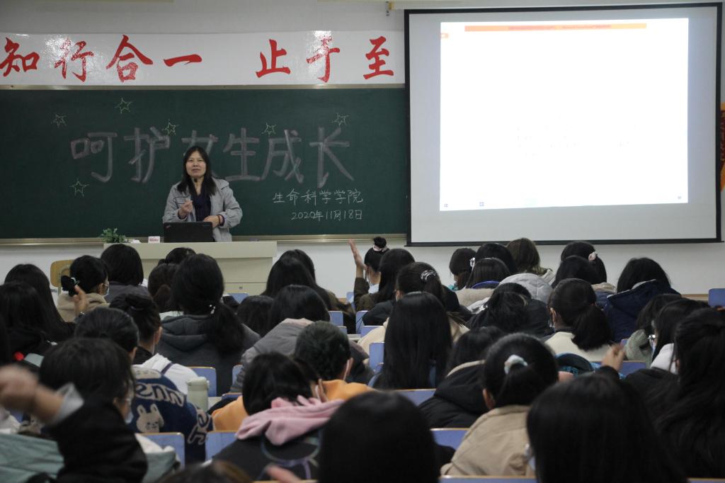 为了提高女生的安全防范意识,加强女生心理健康教育,11月18日,万象城awcsport官网在墨子楼403教室开展“呵护女生成长”主题讲座。讲座由枣庄学院呵护女生教育工作组张春侠老师主讲。万象城awcsport官网2020级全体女生聆听了讲座。