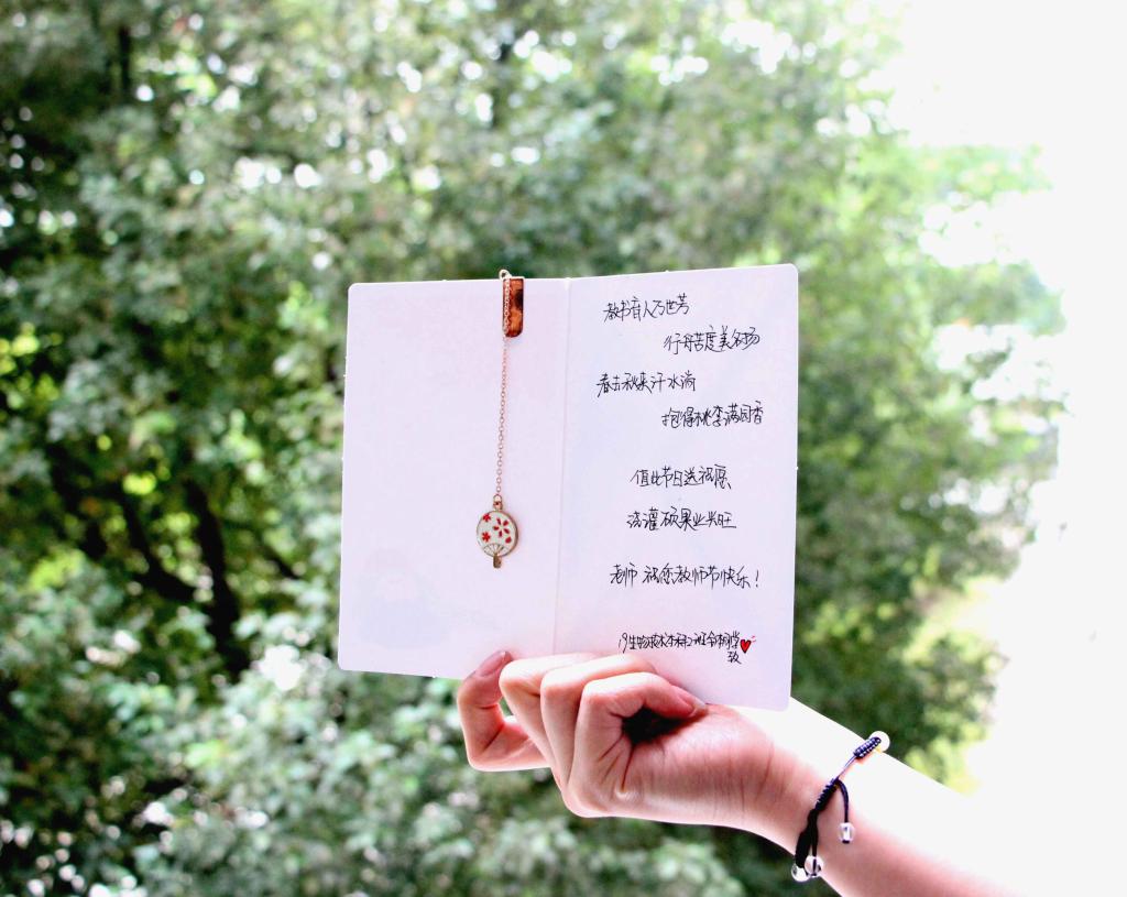 为庆祝本次教师节,感恩老师们的关心和教育,万象城awcsport官网各年级学生代表通过录制视频,用真诚的声音表达对教师的祝福和感恩。学院学生纷纷通过写贺卡、写邮件、发信息等方式向恩师表达最真诚的祝福。学生会成员为庆祝教师节制作宣传板报,借助艺术的语言和符号,以图文并茂的形式抒发对教师的感恩之情。