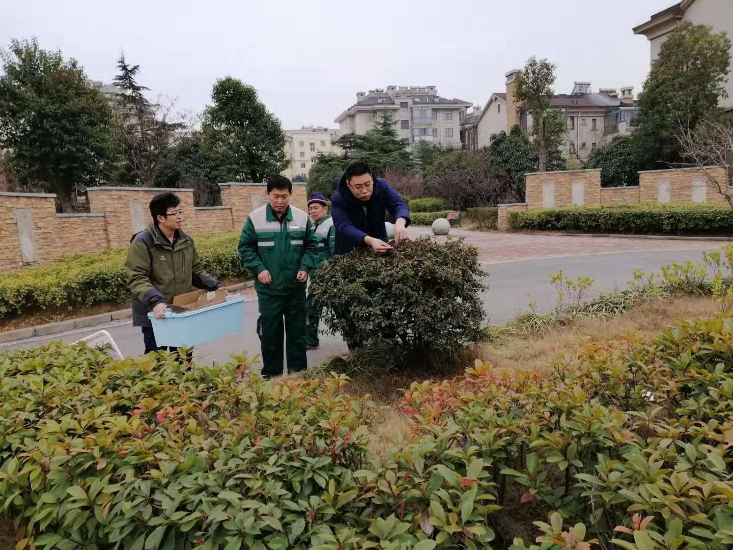 在东盛社区白马庄园物业工作人员的引领下,党员教师们冒着严寒对两个小区内的200余种苗木进行了仔细识别和铭牌悬挂。悬挂苗木铭牌方便了社区居民对各种苗木花卉的名称及其属性了解,提高居民对社区苗木花卉的保护意识。该活动得到了东盛社区党委及居民的一致认可与好评。