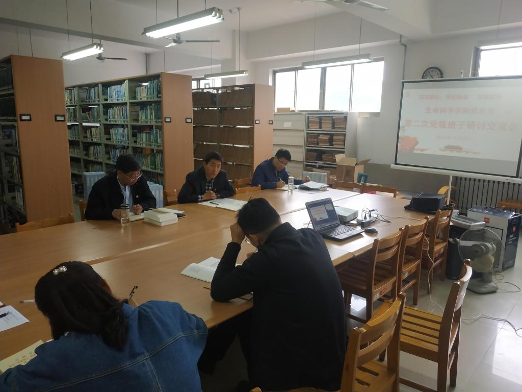 2019年10月9日10:30,万象城awcsport官网党总支在理工楼2221资料室举行处级班子学习暨“不忘初心、牢记使命”主题教育第二次研讨交流会议。党总支书记郭传鑫主持会议并讲话。党总支副书记陈原国、王洪凯,党支部书记出席会议。