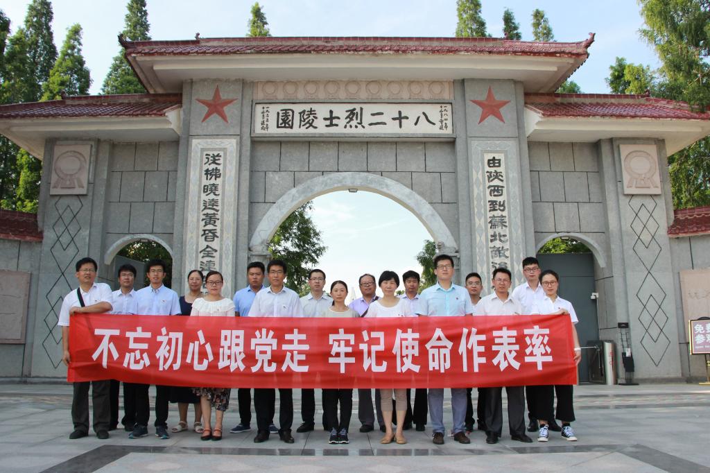 在刘老庄八十二烈士纪念馆和烈士陵园,瞻仰了在抗日战争时期华中淮海区刘老庄牺牲的82位烈士纪念馆、烈士墓、纪念碑、壮志亭等,聆听了战斗英雄们悲壮的事迹,感人肺腑、催人泪下,党员们深刻体会到我党领导下的人民军队浴血抗战的历史和抗日烈士的爱国主义革命精神。全体党员在烈士纪念碑下,缅怀英烈,重温了入党誓词,面向党旗庄严宣誓。